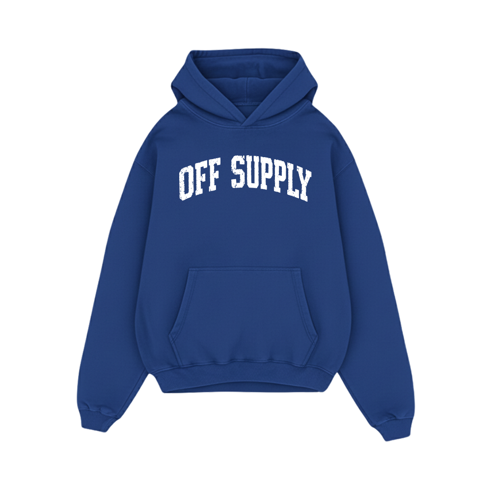Off supply Varsity text Blue Hoodie
