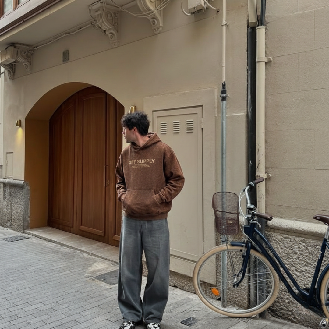 OFFSUPPLY GRAPHIC PRINT EARTH CLAY ACID WASH HOODIE