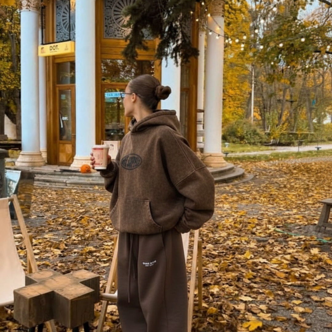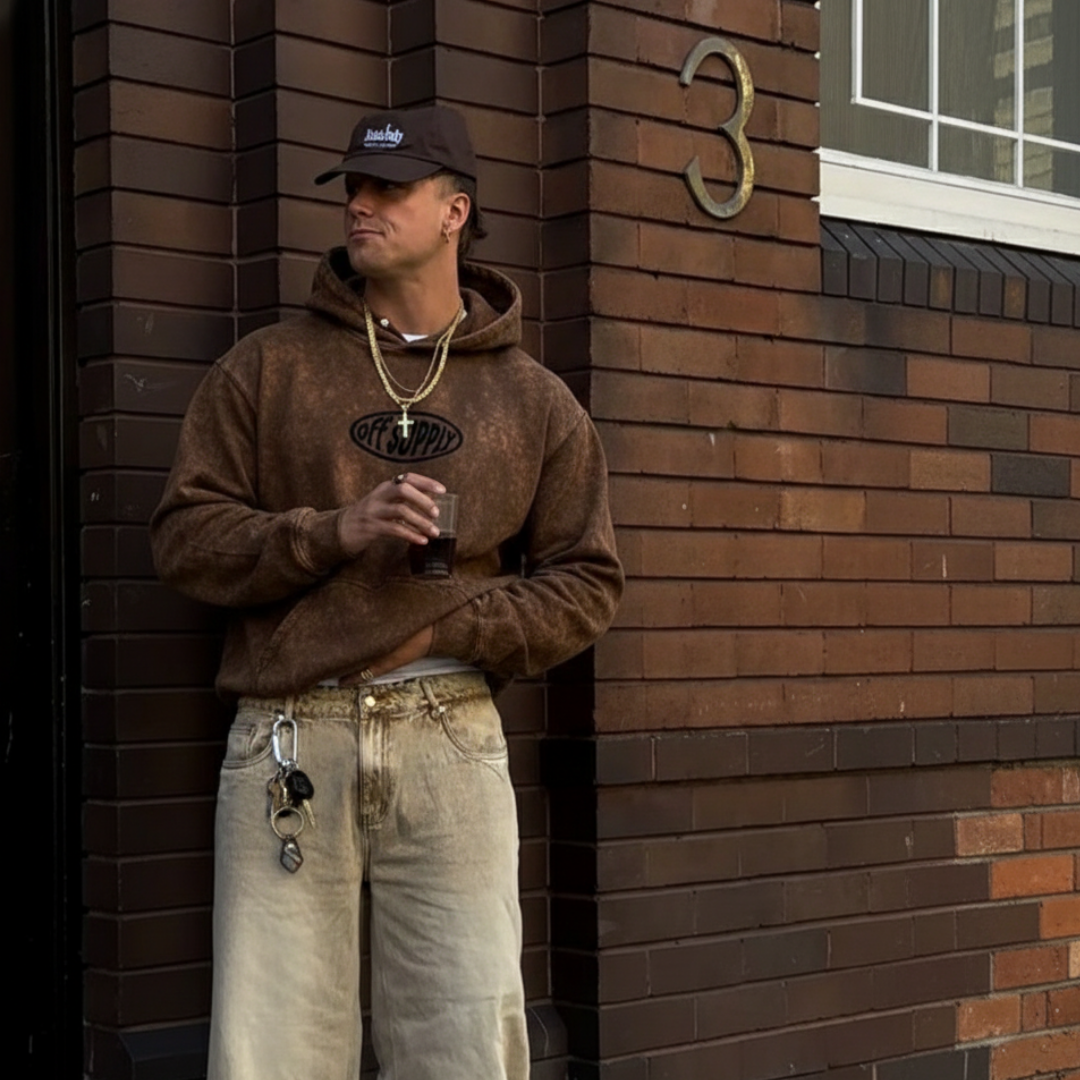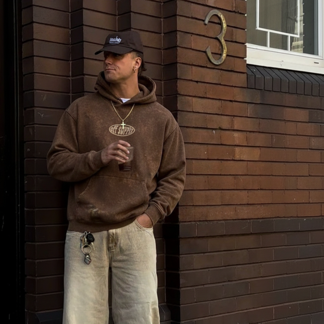 OFFSUPPLY OVAL EARTH CLAY ACID WASH HOODIE